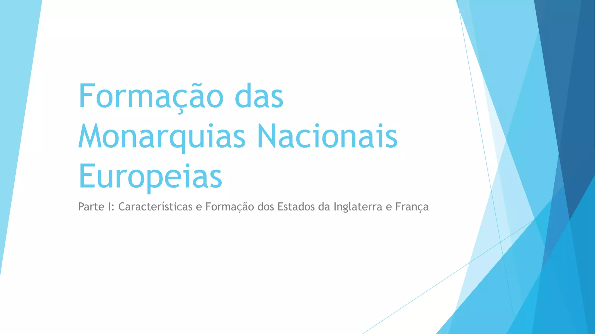 Este trabalho abordará como ocorreuaformaçãodasMonarquiasNacionaisnoperíodo final daIdadeMédianaEuropa, forma de organização política que deu origem aos Estadosnacionaiseuropeus,omodelo do EstadoModerno. Para tanto são necessários.