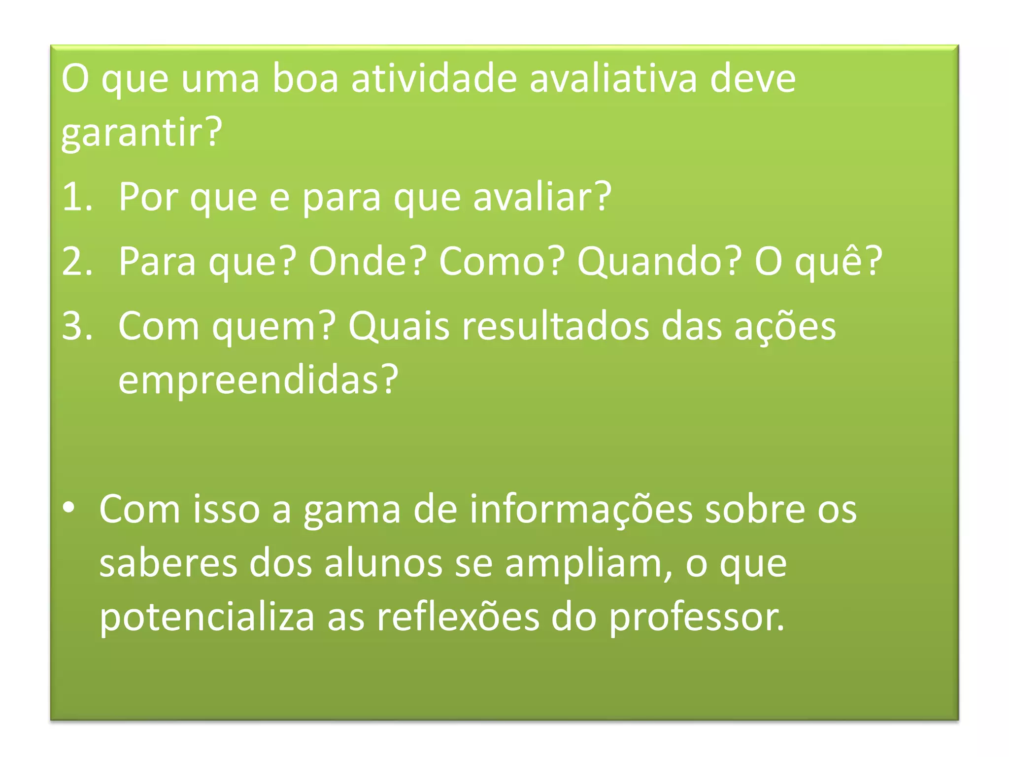 Considera-se, então, a viabilidade da utilização dos jogosnocontextodeavaliação dos estudantes, observandoquaissão suas dificuldades e analisandoquaissão seus avanços em relação a determinadoaspectodo desenvolvimento, ou ainda, sobre algum conteúdo escolar específico.